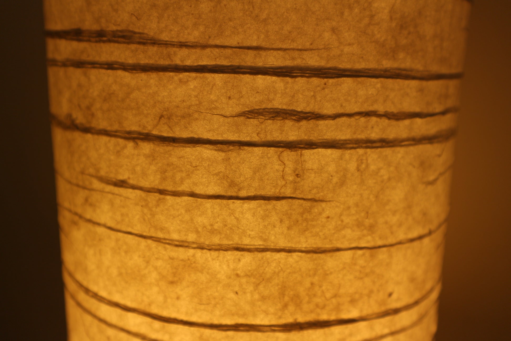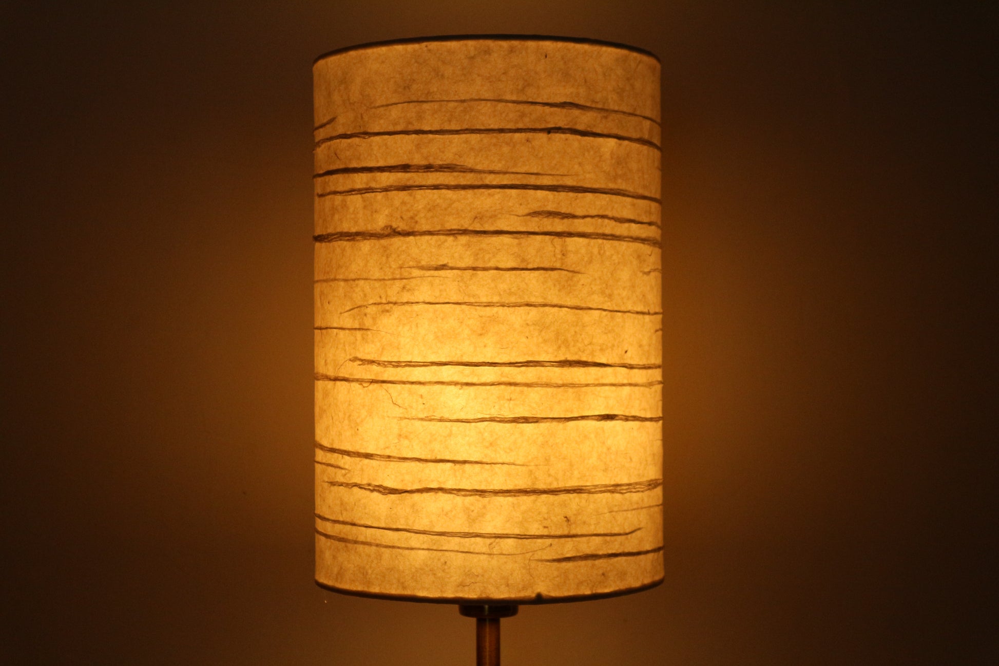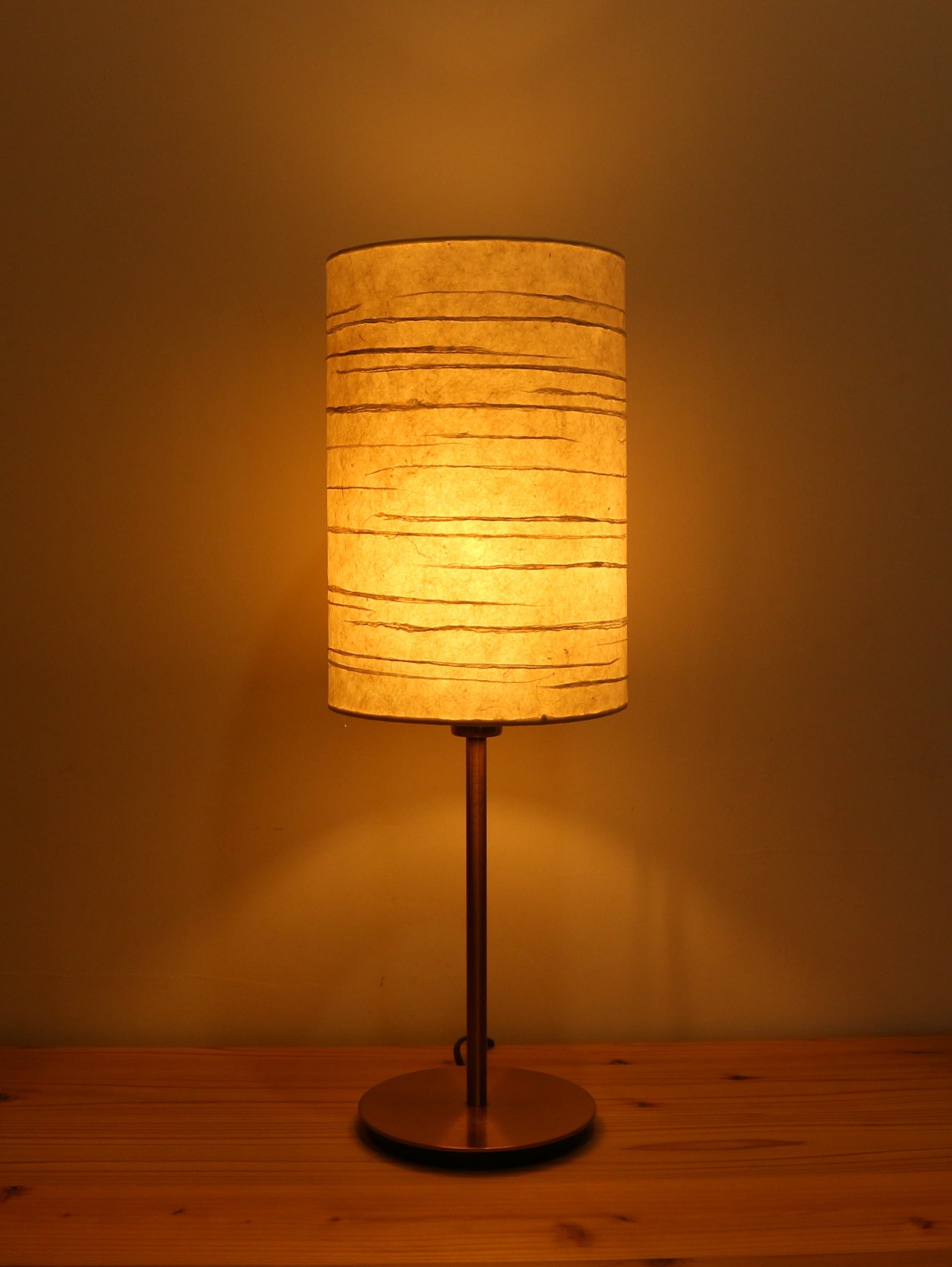 凪を思い浮かべる水平の線の模様、円筒型の手漉き和紙ランプシェードです。やわらかく拡散された光を生み出し、寝室やリビングなど、空間に温もりと静けさを添えたい場所に最適です。